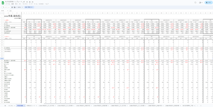 ※こちらは 【無料公開】PL予実管理テンプレートからテンプレートを引用させていただきました。
