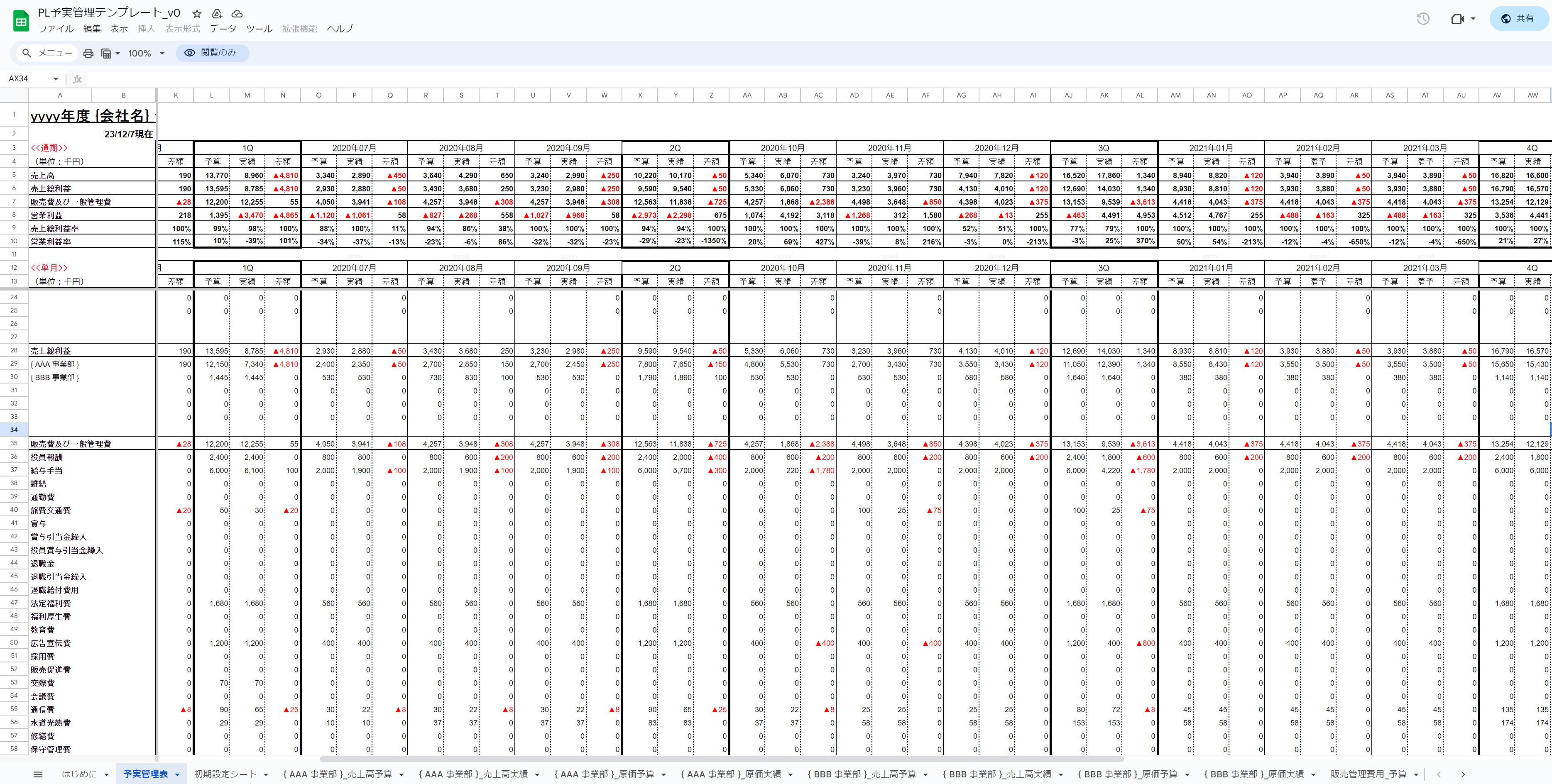 ※こちらは 【無料公開】PL予実管理テンプレートからテンプレートを引用させていただきました。