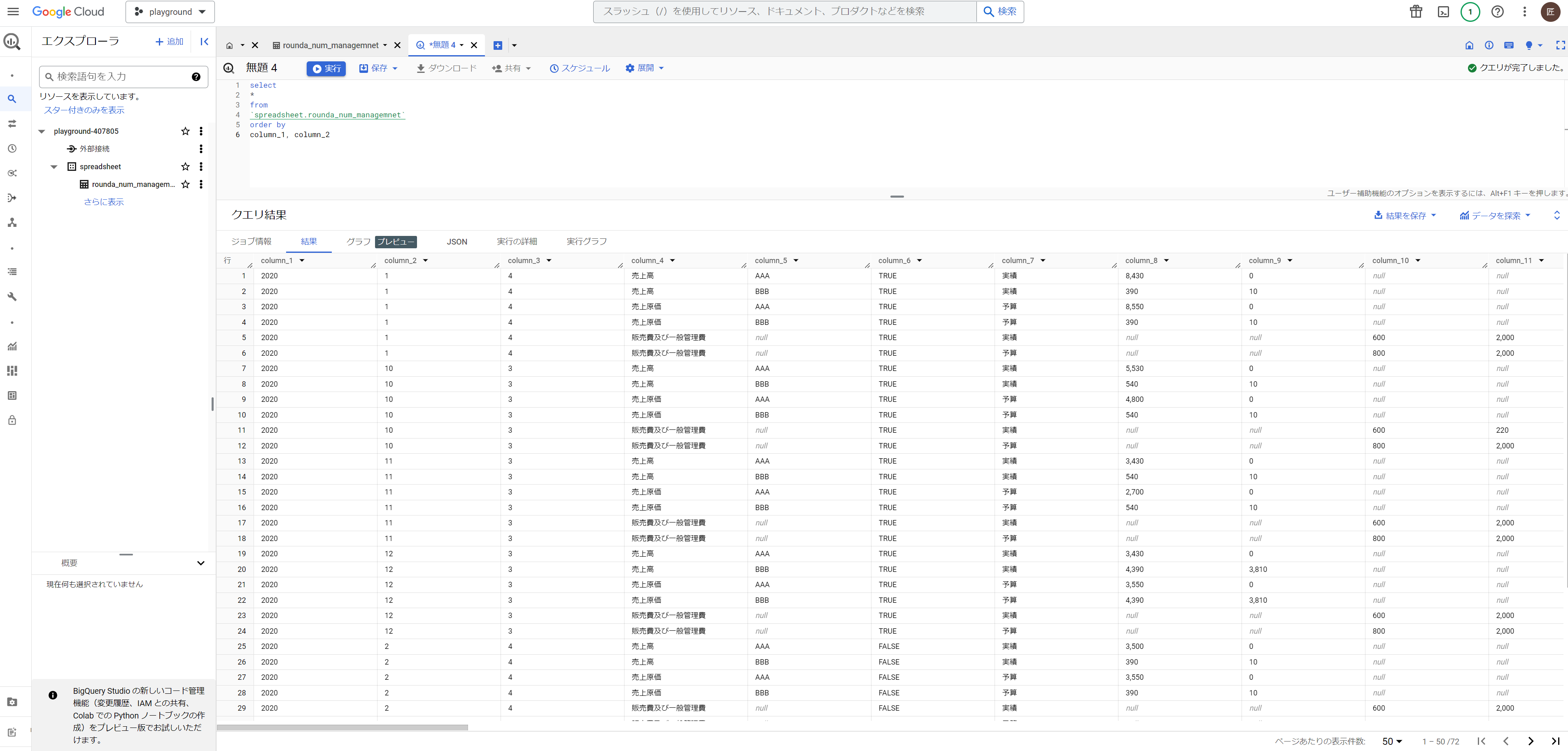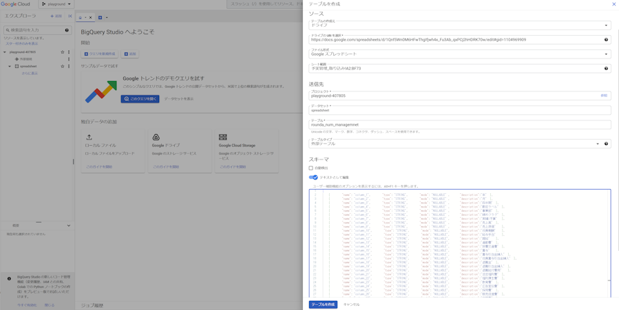デメリットとしては、BigQuery内のストレージ参照ではないため、SQLクエリの速度が遅くなります(肌感としては数倍~数十倍)