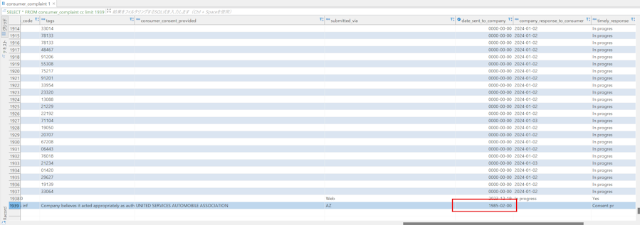 TROCCOでは何事もなく転送が完了しました。ちなみにTROCCOで転送された結果は "1985-01-31" となっていました。